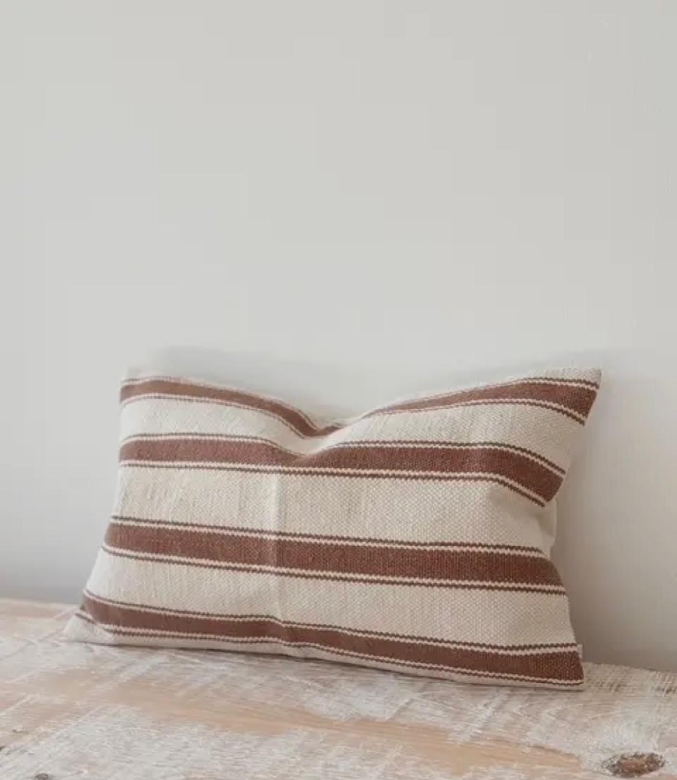 India Cotton Cushion Cover 50 x 30 Cream & Brown Stripe