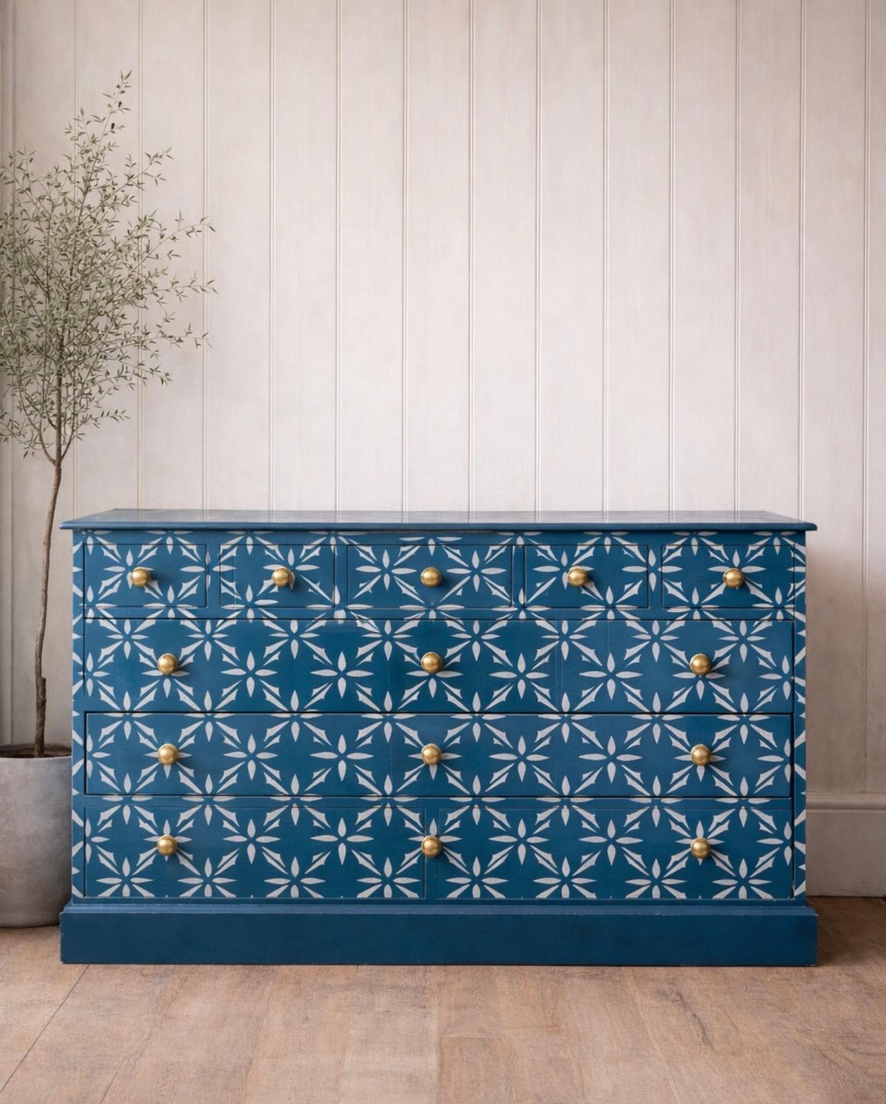 Offering generous storage across multiple drawers, this piece is as practical as it is stylish—perfect for bedrooms, hallways or living spaces. The hand-painted finish gives it a unique, artisanal quality, ensuring no two pieces are exactly the same.